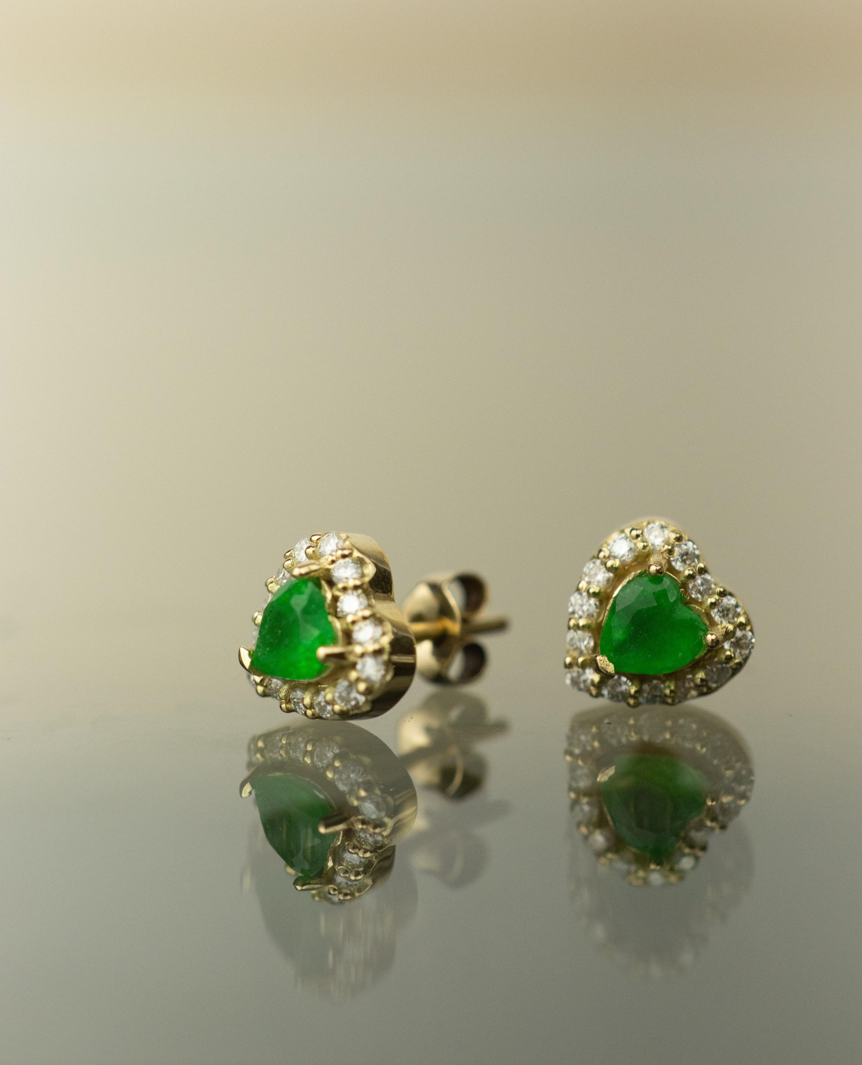 Cadena corazón de esmeralda & diamantes / Medida 40 CM / 1 Esmeralda / 14 moissanitas / Oro 18 K